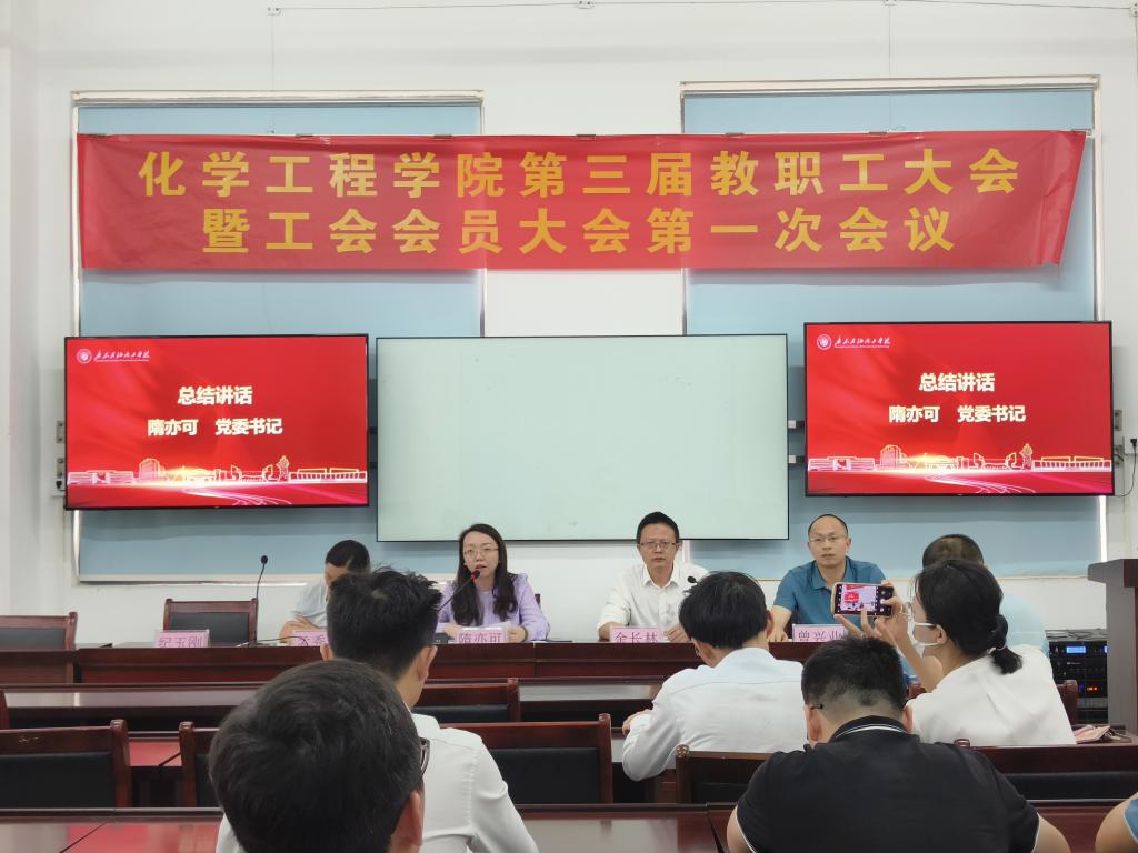 4月3日下午,化学工程学院在化工楼C104隆重召开第三届教职工大会暨工会会员大会第一次会议,全院教职工参加大会,党委副书记、分工会主席纪玉刚主持会议。