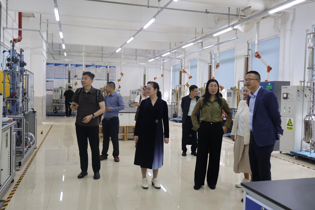 学校教务部部长刘美与院长余长林等陪同兰翠玲一行参观了广油-瑞派创新设计产业学院、仿真实训平台、裂解实验室等实训平台。参观过程中,孟秀红简要介绍化工学院和化工学科的发展情况。随后,双方就学科专业建设与发展、人才培养、产业学院建设等方面展开交流。