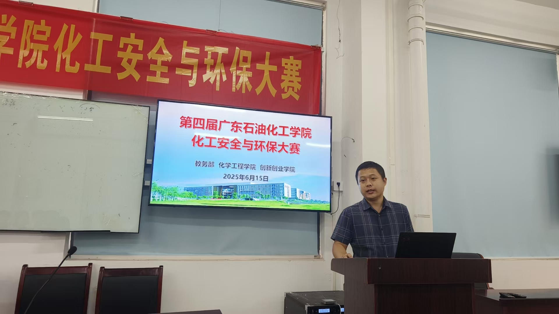 为加快高等学校化工类专业“新工科”、AI+石油化工建设,对标化工类专业教学质量国家标准要求及专业工程教育认证要求,培养学生的安全环保意识,化学工程学院联合教务部、创新创业学院举办了第四届beat365官方网站化工安全与环保大赛暨省级一流本科课程《化工安全与环保》第二课堂项目活动。本次大赛由《化工安全与环保》课程教学团队及化学工程学院团委承办,于2025年4月30日启动,历经了报名、提交作品、初赛阶段,现场决赛答辩于6月15日在化工楼C104举行。