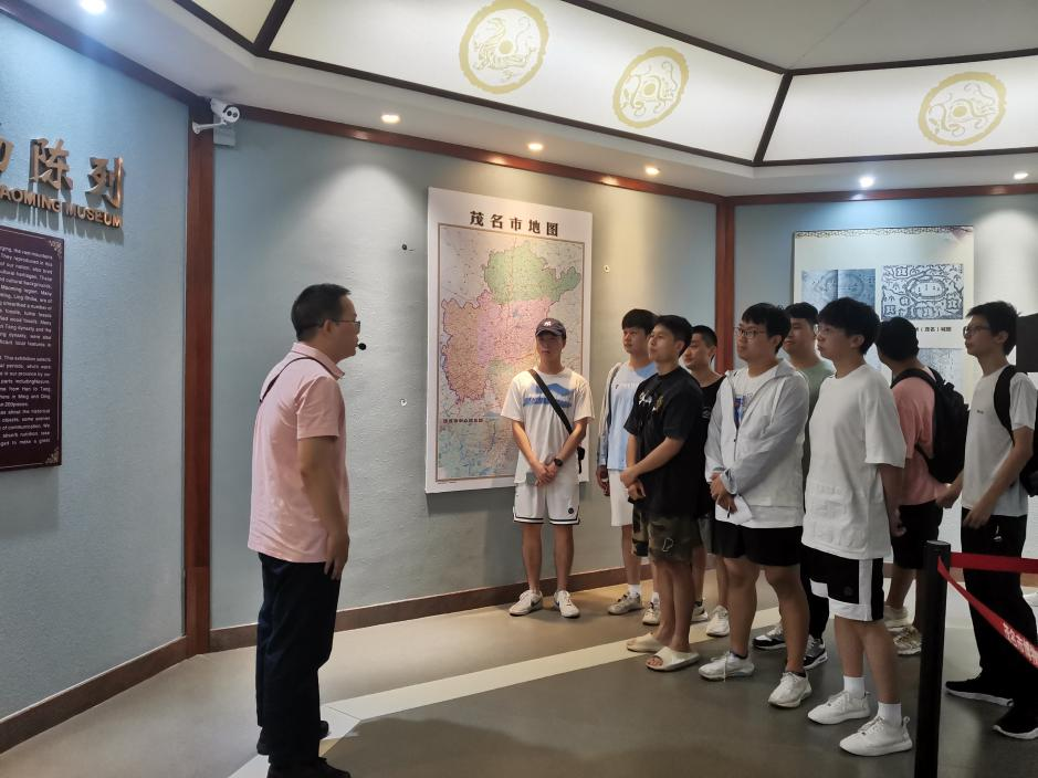 陈海均带领研究生新生到茂名市博物馆参观,深入浅出地为研究生讲解茂名的“前世今生”,以及在茂名历史文化发展与传承中涌现出来的诸多杰出的历史人物生平故事。研究生一边听着讲解,一边观看历史文物,用心感受时代脉搏,感受时代变迁在茂名留下的岁月痕迹。