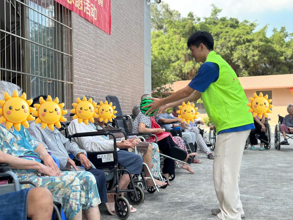 除了美食的分享,志愿者们还与老人们玩起了皮球游戏。在这个轻松愉快的氛围中,老人们的童心被唤醒,他们与志愿者们一起欢笑、一起游戏,仿佛回到了无忧无虑的年轻时代。