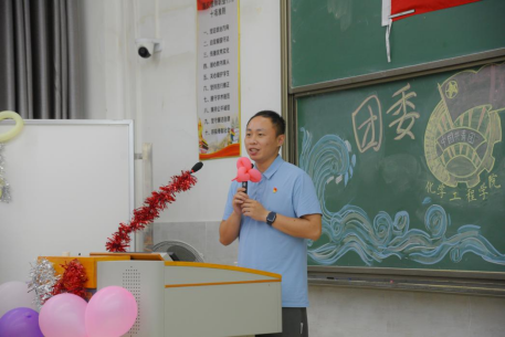 团委老师表真谛,寄厚望展未来。化工学院团委指导老师黄清意首先对过去一年团委工作取得的优异成绩表示充分肯定,对全体团委成员的辛勤付出表示衷心感谢。他指出,团委是学院青年学生的先锋队和突击队,承担着引领青年、服务青年、凝聚青年的重要使命。希望新一届团委能够继续深入贯彻全心全意为人民服务的宗旨,以浪潮儿向涛头立之精神,为学院团委事业的发展贡献智慧和力量。