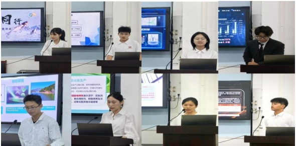 竞赛现场,紧张而热烈,智慧与激情交织。选手们全神贯注,思维火花四溅,每一个项目都是创新的结晶,每一次陈述都饱含对未来的憧憬。观众席间,目光聚焦,掌声雷动,为每一个创意喝彩。评委们提出的每一个宝贵的意见都带给选手们新的思考,经过激烈的角逐和评审团的细致评估,最终有14个项目脱颖而出,进入学校复赛分别是《新釜护航,还原色彩》《微启高产,唑领未来》《一种用于高效降解四环素的新型钼酸铋同源异质结》《空心正立方体硫化物复合材料光催化降解》《原油追踪--致力于追溯原油产地的智能机器人》《新铜科技》《制氢新引擎-Ni2S3量子线掺杂体》《净茎脱芳--低共熔溶剂助力环保新纪元》《骼新者--专注于自修复性人工骨骼开创骨愈未来》《光催化C02还原甲醇制氢及高效产物分离装置的一体化设计》《C9-AQ生产废水共处理系统研究》《二氧化碳吸附科技先锋者》《储电新材》《渔光同行》。