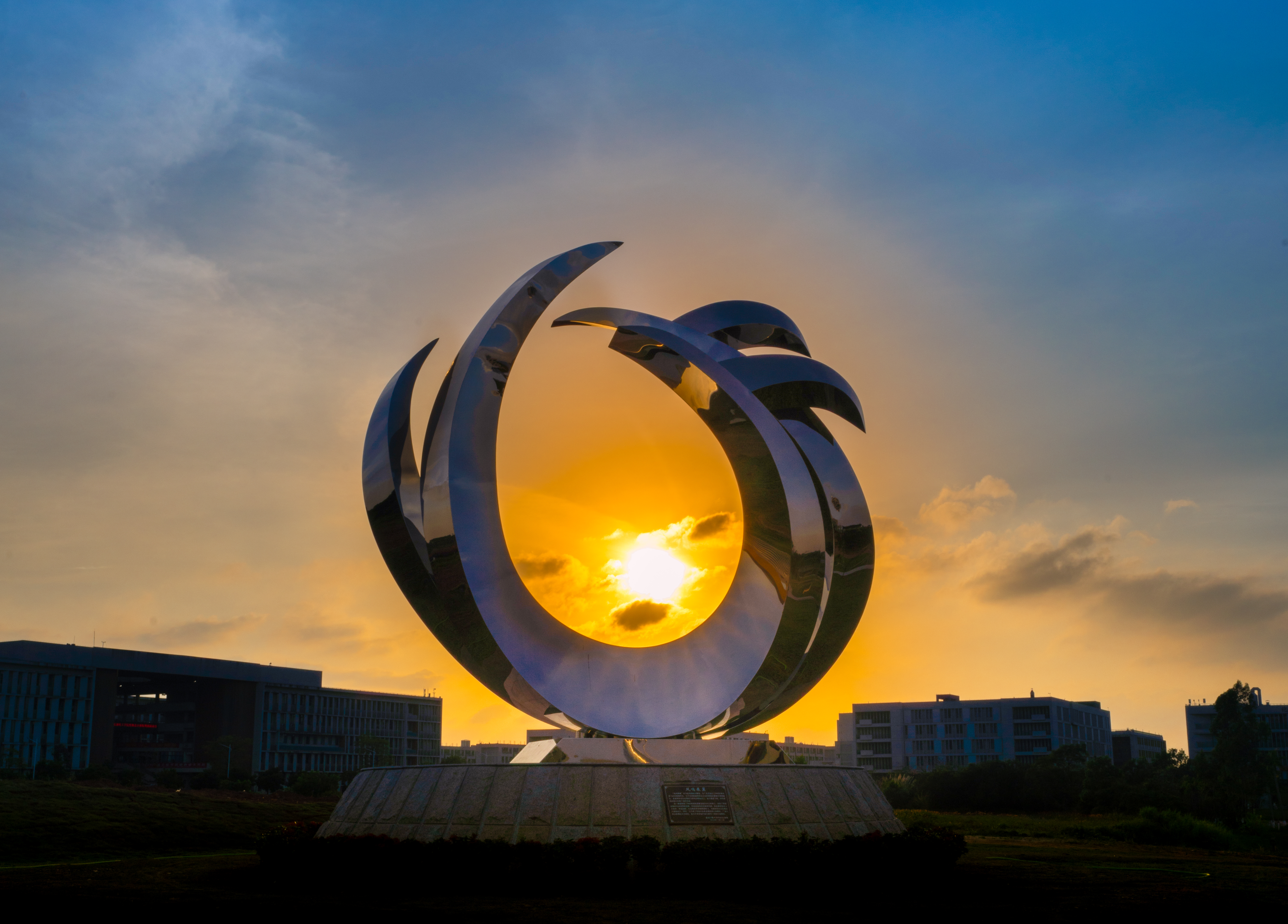 西城校区建校70周年纪念园起凤园凤鸣展翼雕塑