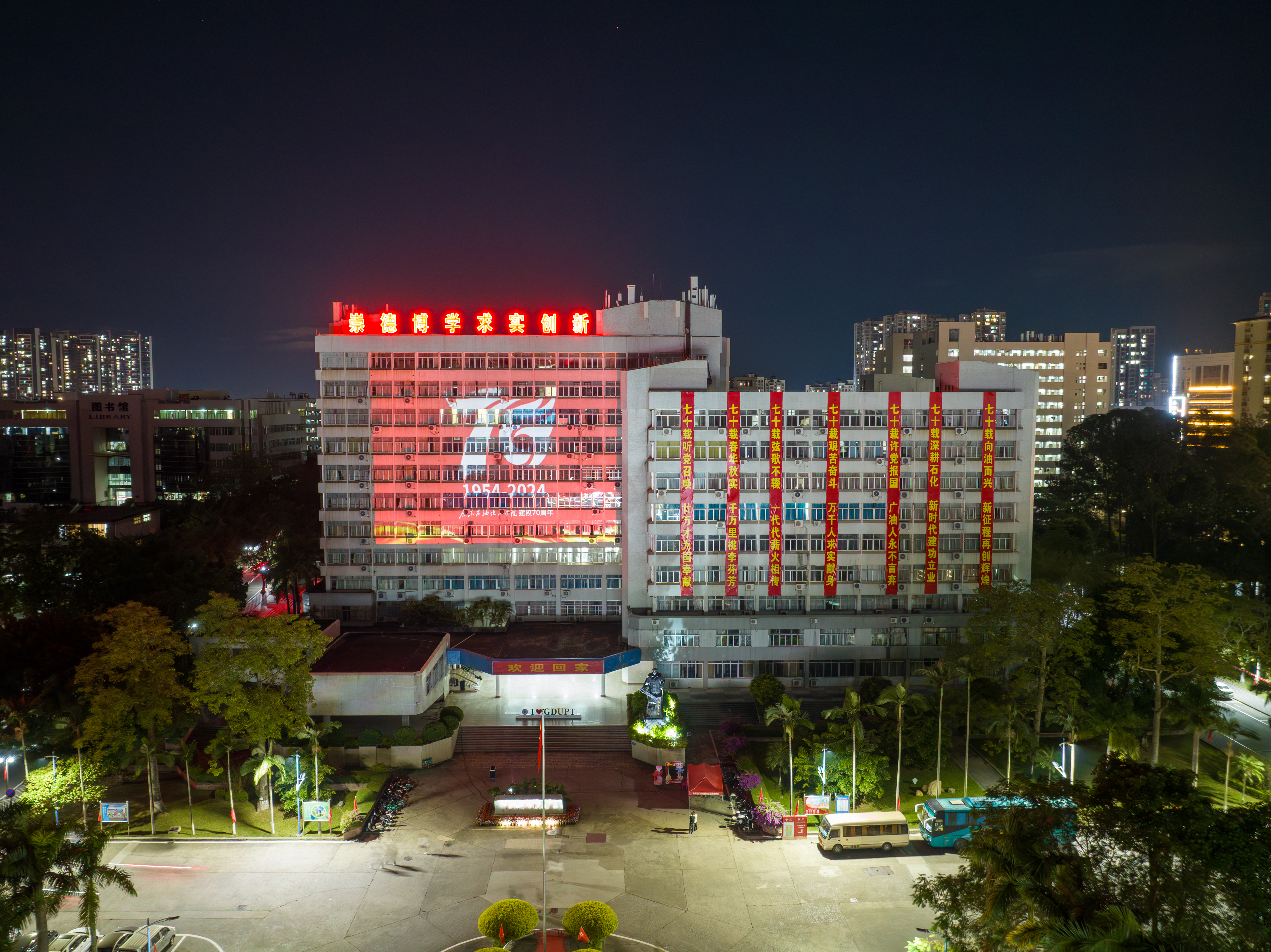 第一教学楼建校70周年投影(摄影:刘传民)